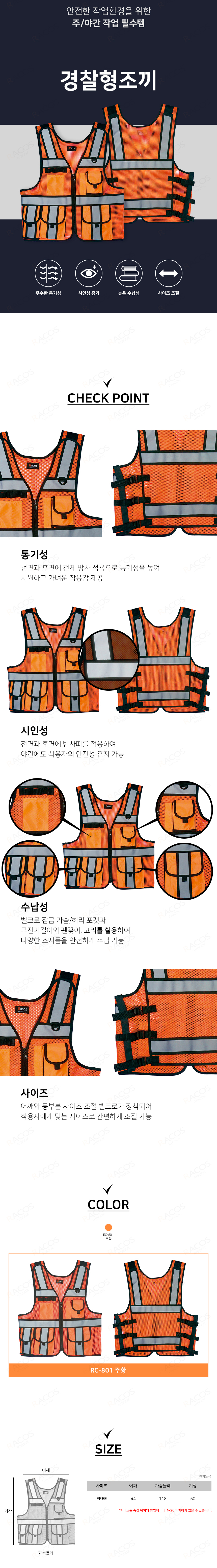 경찰조끼(프리) 주황색