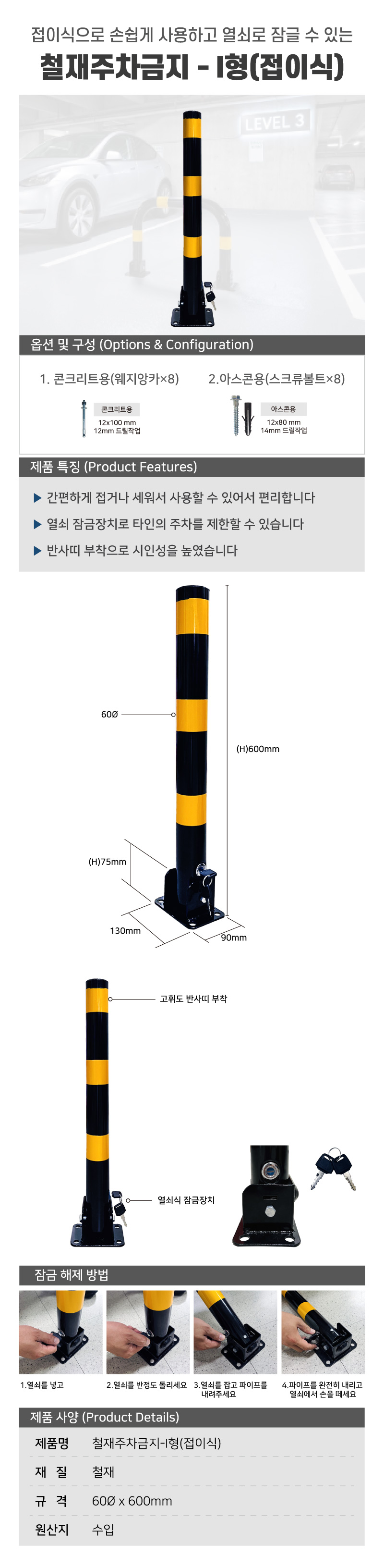 [철재주차금지-I형(접이식)] 관련 상품 총 3개 상품이 있습니다.