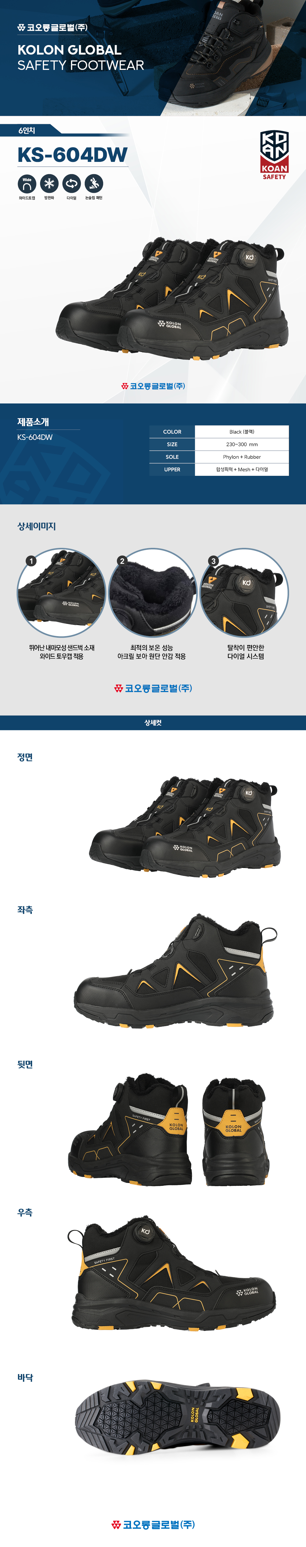 코오롱 안전화 KS-604DW (6인치/다이얼/방한)